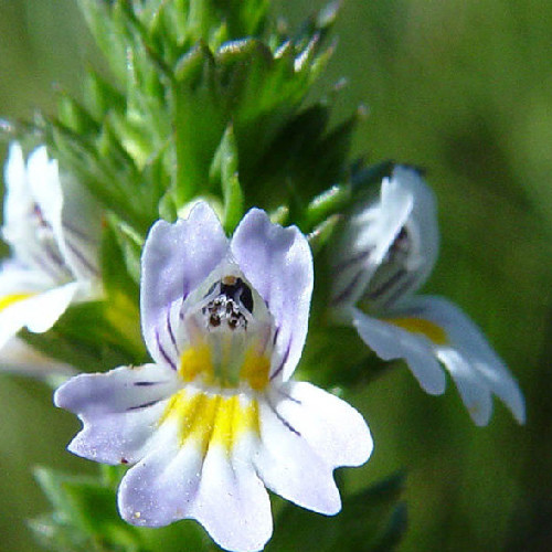 Στη πρώτη περίπτωση, η Ευφραζία χρησιμοποιείται είτε ως κομπρέσα είτε ως οφθαλμική πλύση. Θεωρείται ιδιαίτερα αποτελεσματική σε περιπτώσεις οφθαλμικών μολύνσεων, επιπεφυκίτιδας, τσούξιμου των ματιών που συνοδεύεται από εκκρίσεις (όξινη, καυστική δακρύρροια), βλεφαρίτιδας, υπερευαισθησίας στο φως και καταρράκτη.